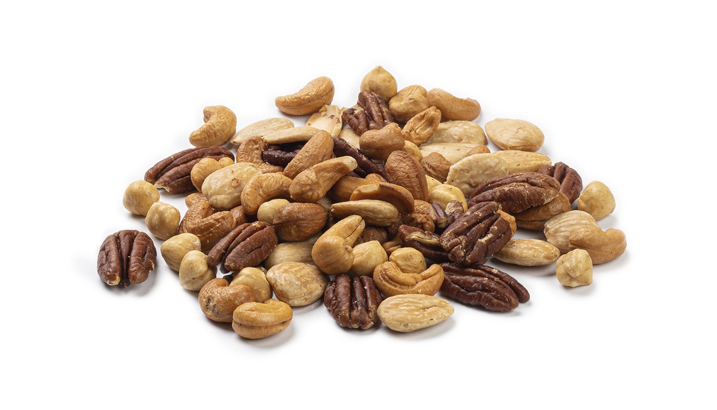 Mix van: ongezouten Cashewnoten, ongezouten Hazelnoten, ongezouten Pecannoten, ongezouten Spaanse Amandelen